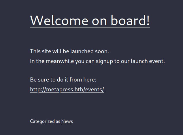 Nmap done: 1 IP address (1 host up) scanned in 210.05 secondsftp, and ssh are password protected let’s add metapress.htb to /etc/hosts and run nmap again on port 80.