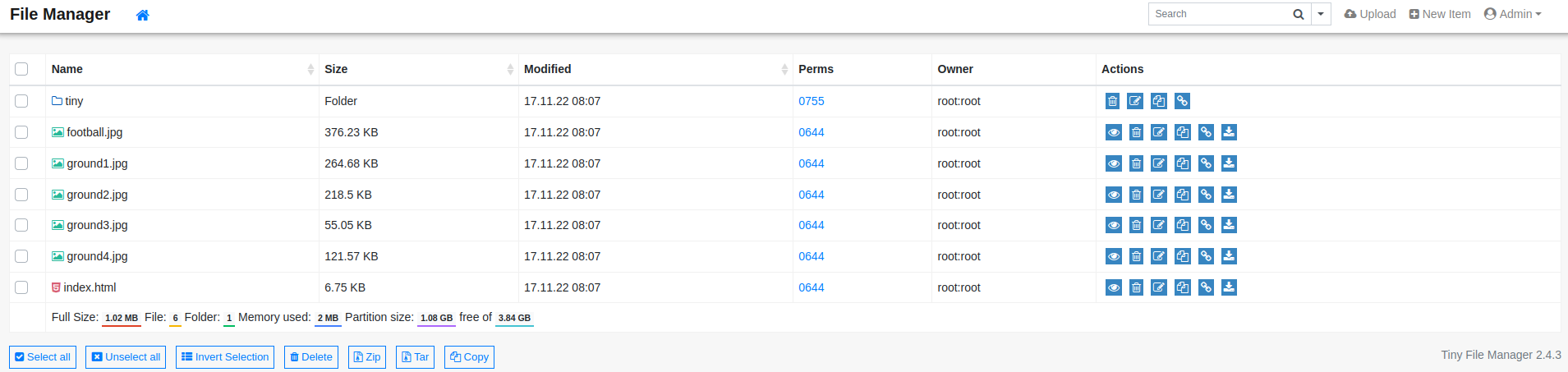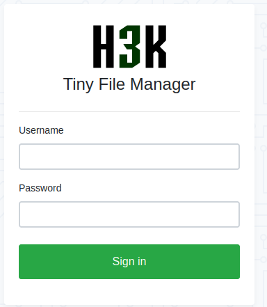 Googling “Tiny File Manager default credentials” I find admin:admin@123. I am able to login with these credentials!