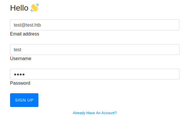 127.0.1.1 ubuntu-focal ubuntu-focalAdding soc-player.soccer.htb to /etc/hosts and navigating to the subdomain in my browser, I find a page similar to “HTB FootBall Club,” but with a Signup page.